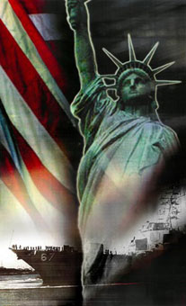 Approach: Using symbols of the United States such as the Statue of Liberty, the American Bald Eagle, and The Declaration of Independence, the goal was to create a cohesive series envoking a spirit of patriotism. The idea was to create this feeling of strength, and patriotism without distracting the viewers attention from the important news being delivered. The background was kept rather dark with splashes of deep, earthy reds and yellows so as to let the news of the time remain central.