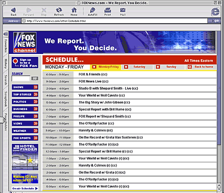 Responsible for the design of the user interface for the website programming schedule page (2001).